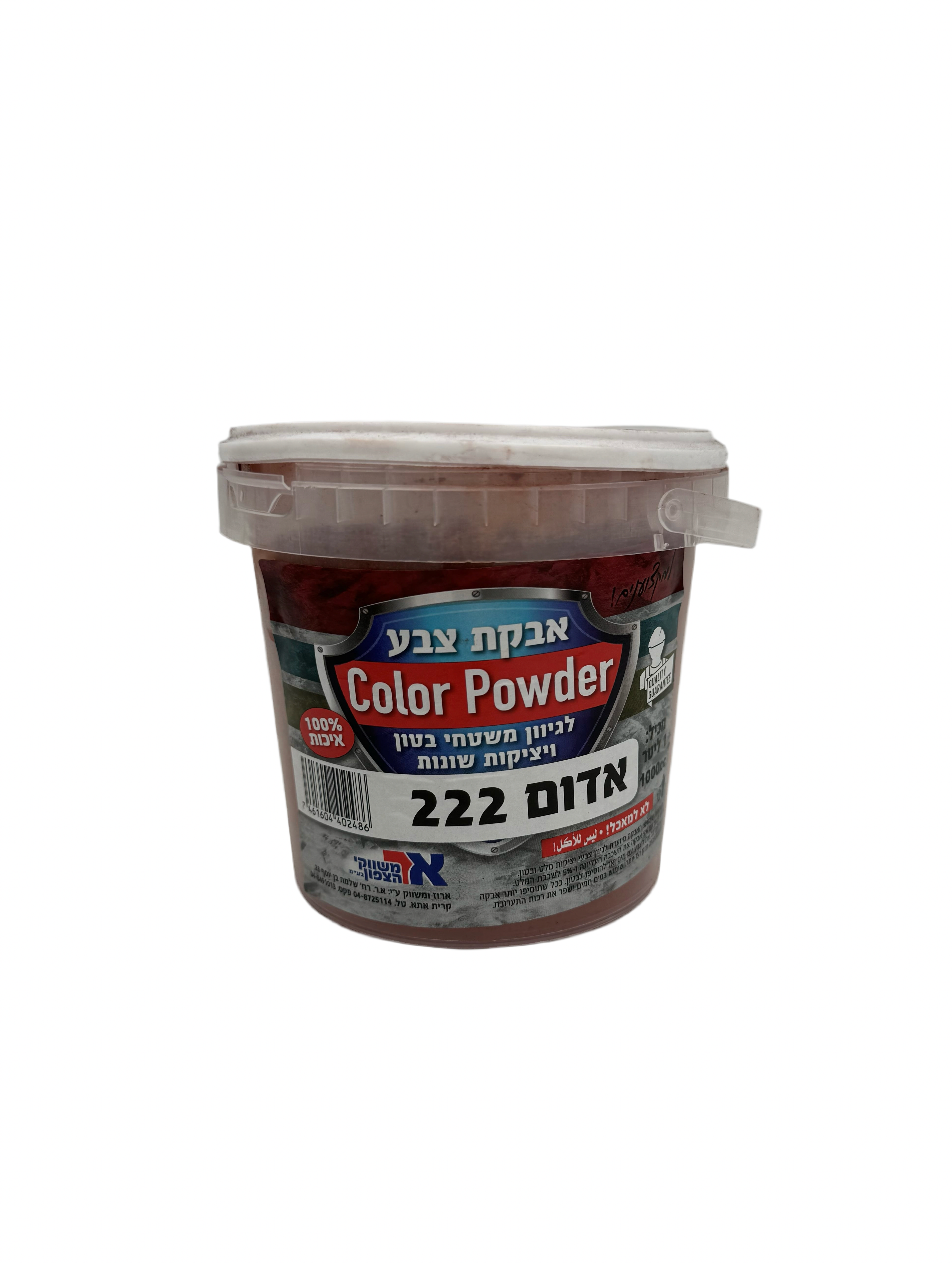 אבקה אדומה 1 ק"ג להוספה/פיזור לתערובת הבטון לפני יציקה או לפיזור עליון בזמן החלקת "הליקופטר".