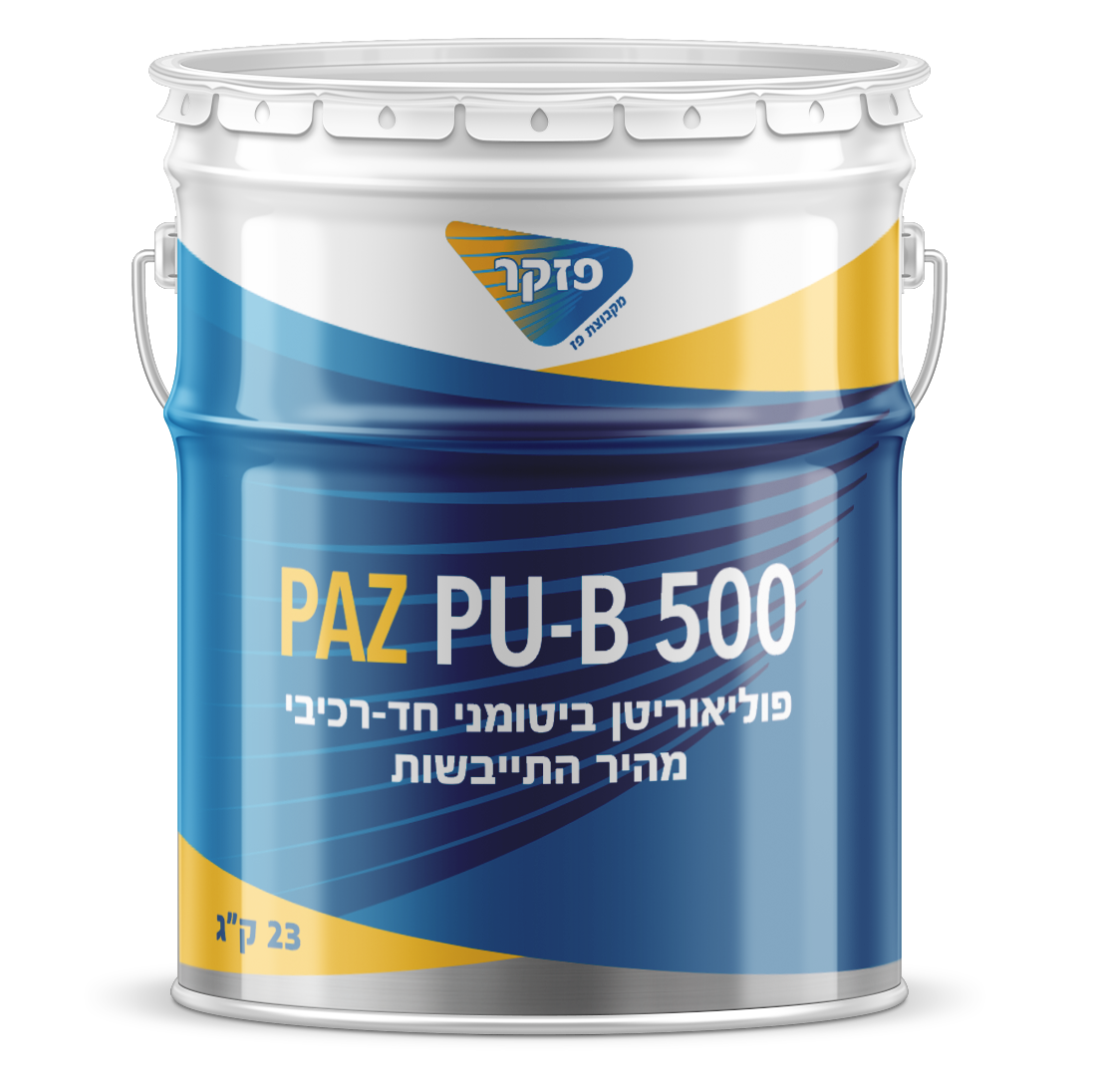 איטום PU-B 500 פזקר - חומר איטום חד-רכיבי על בסיס פוליאוריטן וביטומן מהיר התייבשות היוצר שכבת ממברנה אלסטית חזקה וגמישה, בעלת אפקט הידבקות ניכר אל רוב משטחי הבניה. כ-23 ק"ג.