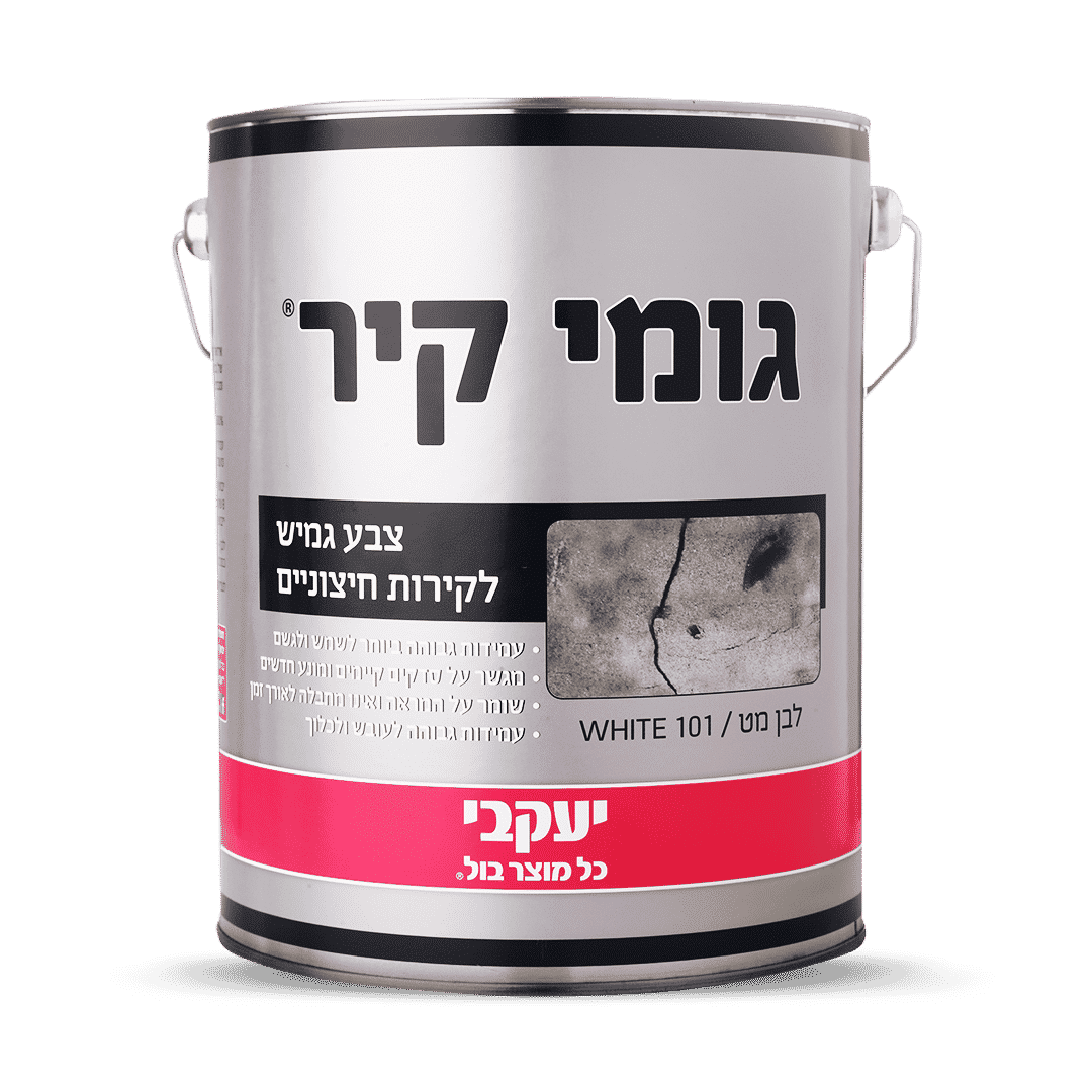 גומי קיר יעקבי - חומר איטום גמיש ולבן ברמה גבוהה מאוד לצביעה של קירות חיצוניים להגנה מפני חדירת מים לאורך שנים רבות. כ-6 ק"ג / 15 ק"ג.
