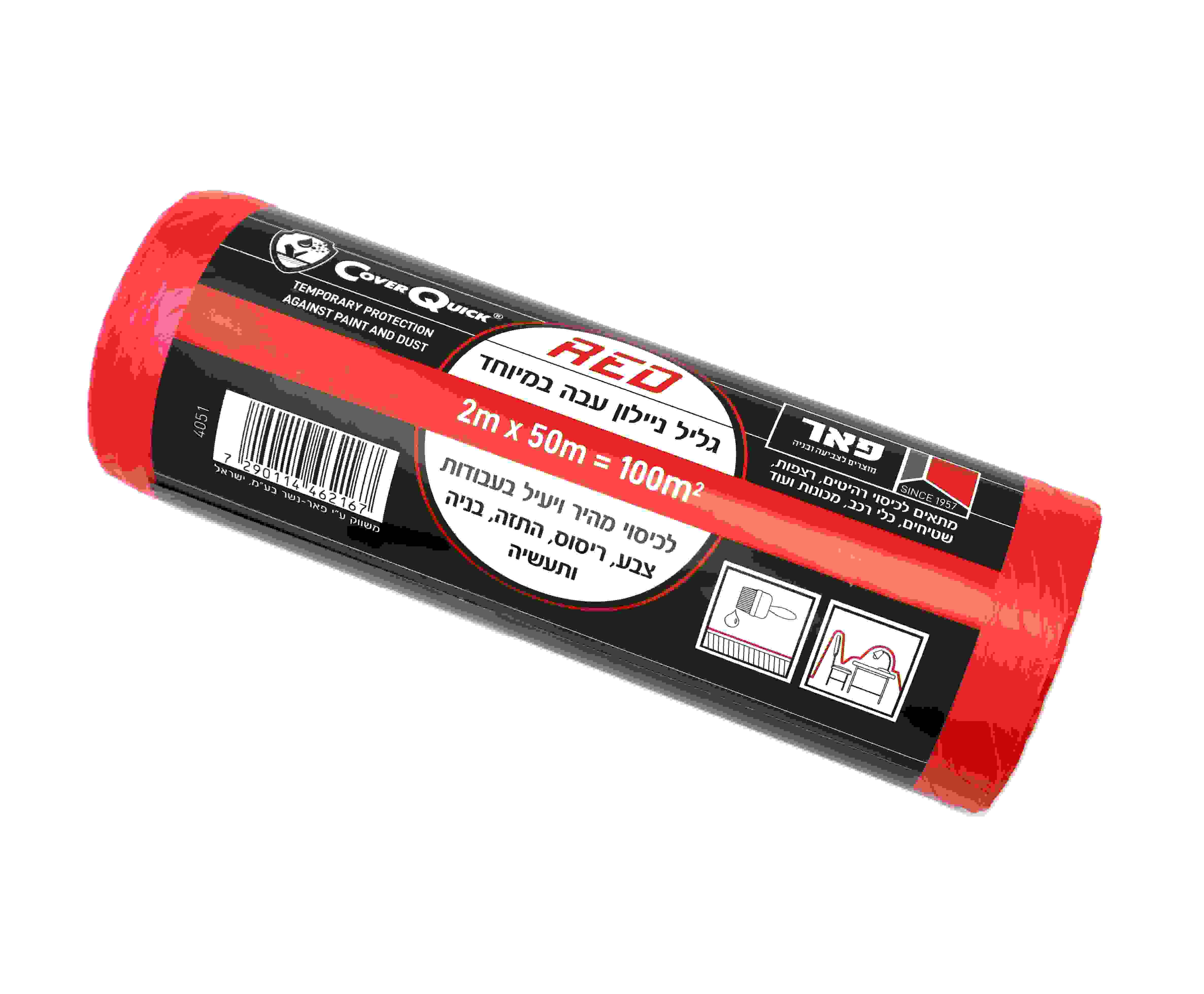 הנוסחה המנצחת לעבודת צביעה או שיפוץ קלה, מקצועית ובעיקר נקייה – היא בחירה נכונה של אביזרים איכותיים! בדיוק כמו גליל ניילון לכיסוי רהיטים מבית פאר. ניילון איכותי ועבה במיוחד לכיסוי יעיל ומהיר תוך הגנה מקסימלית של רהיטים לצד רצפות, שטיחים, כלי רכב, מכונות ועוד. כל זאת במהלך עבודות צבע, ריסוס, התזה, בניה ותעשייה. מגיע באורך 50 מטר וברוחב 2 מטר. צבע אדום.