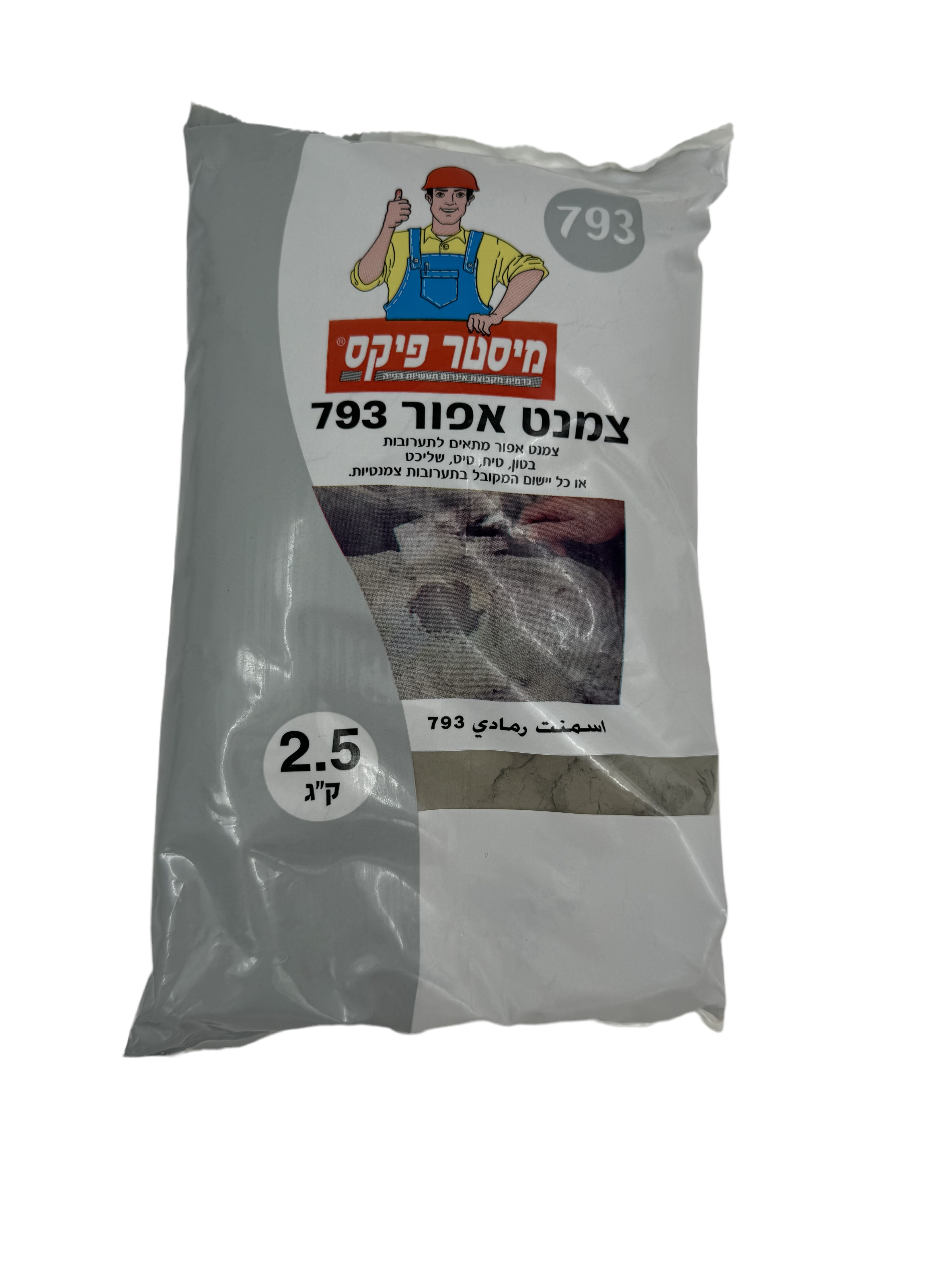 מלט שחור/אפור מיסטר פיקס 793 - משמש בעיקר להכנת תערובת ליציקות בטון כתוספת לתערובת טיט, חול, סומסום, חצץ ועוד. כ-2.5 ק"ג.