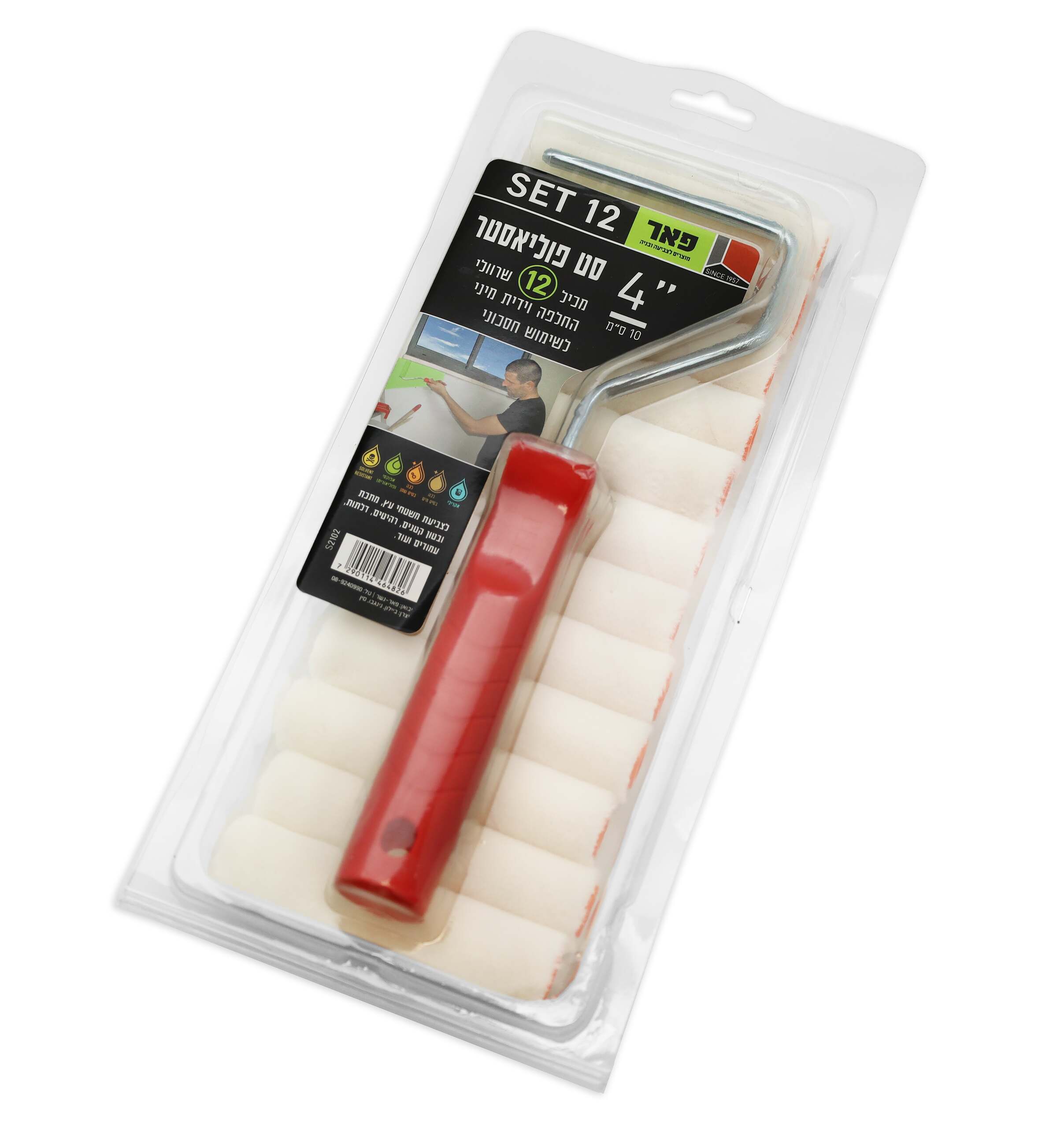 ידית לרולר + 10 שרוולי פוליאסטר 10 ס"מ – לצביעה מקצועית ונוחה!