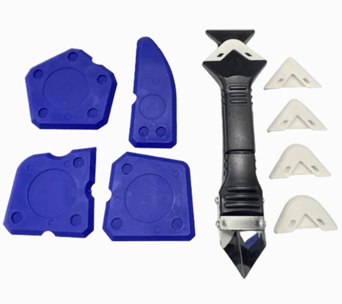 הסט כולל מגוון אביזרי שפכטל לפינות וזוויות שונות, לצד מגרדת להסרת שאריות סיליקון, לקבלת גימור חלק ונקי ללא לכלוך וללא מאמץ.