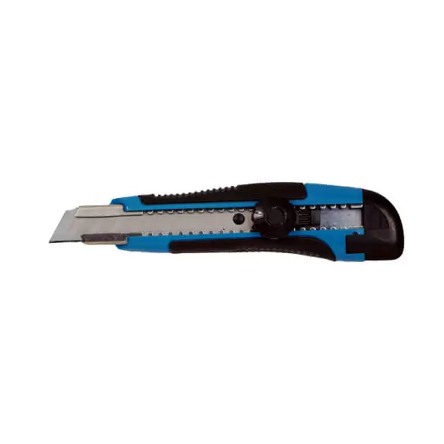סכין יפני רחב ציפוי גומי סכין איכותית בעלת להב חדה ועמידה לאורך זמן ברוחב 18 מ"מ עם מנגנון נוח לשימוש ומחסנית פנימית ללהבים.