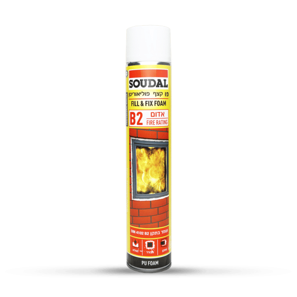 קצף פוליאוריטן B2 מעכב בערה Soudal - חומר מוקצף איכותי המשמש בעיקר לאיטום, מילוי ובידוד מרווחים, סדקים וחורים, בעל הידבקות מצוינת למגוון רחב של תשתיות כמעכב בעירה ועשן. כ-750 מ"ל.