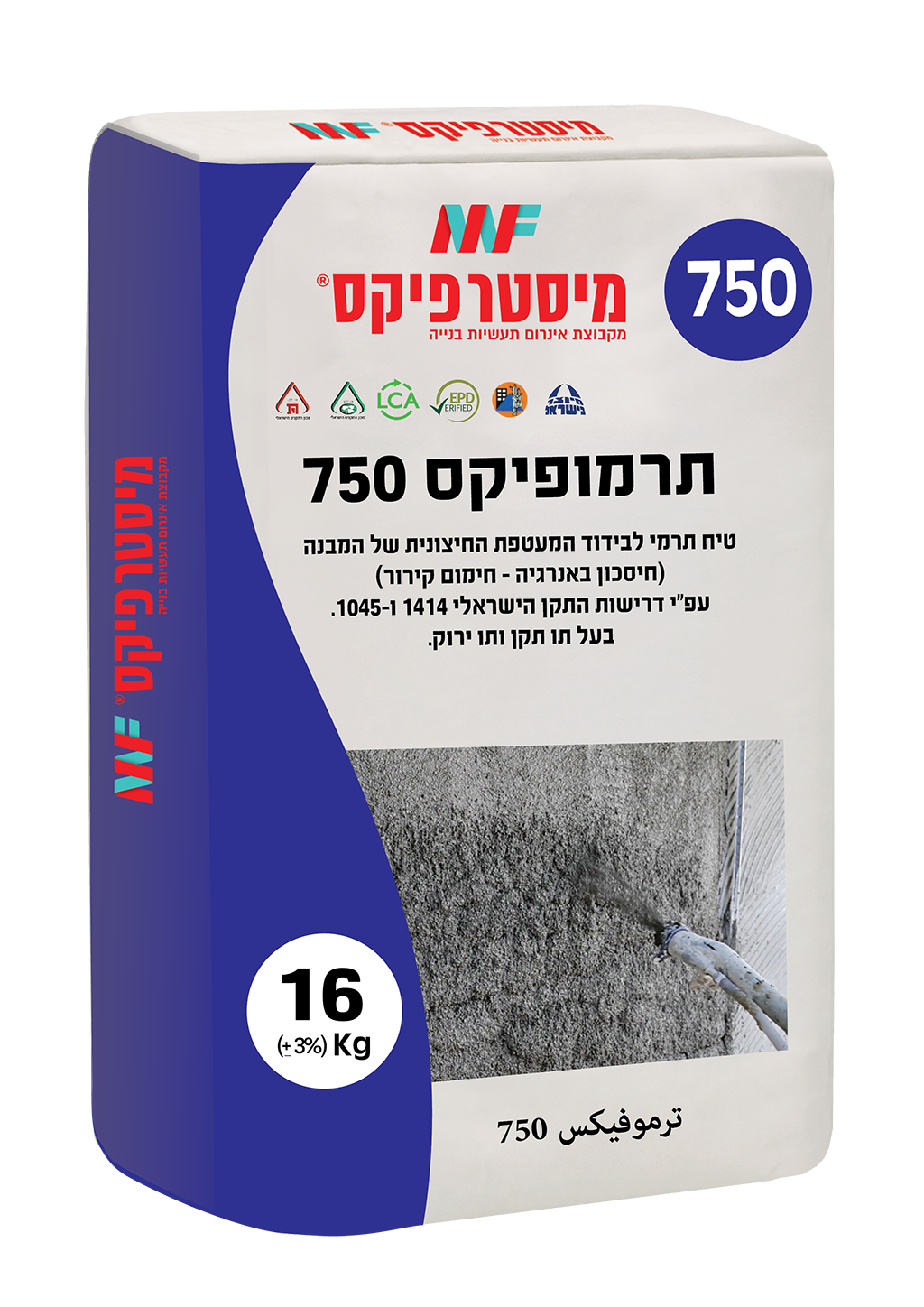 טיח תרמי תרמופיקס 750 מיסטר פיקס טיח לבידוד המעטפת החיצונית של המבנה מחום וקור עד 3 קומות.